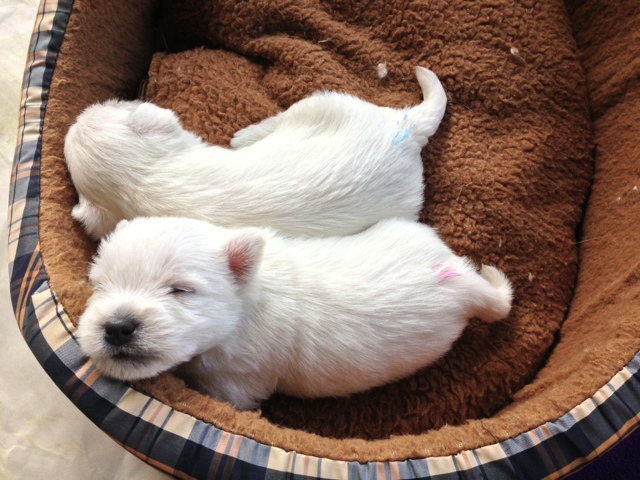 Every time we turn around, these pups are sleeping. Enjoying this now as they will become more active in the coming weeks.